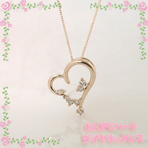 商品説明 □材質 K10PG □石 ダイヤモンド0.07ct □サイズ トップ縦 約16mm 幅 約14mm チェーン 約40cm □重量 約1.0g □備考 納期約1週間いただきます □特典 ラッピング無料!10500円以上で送料無料・代金引換手数料無料 少し斜めのハートが可愛い!トータル0.07ctの7個のダイヤモンドが輝きます。